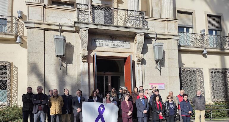 Medio centenar de personas han guardado este miércoles, día 14, un minuto de silencio a las puertas de la Delegación del Gobierno en Extremadura