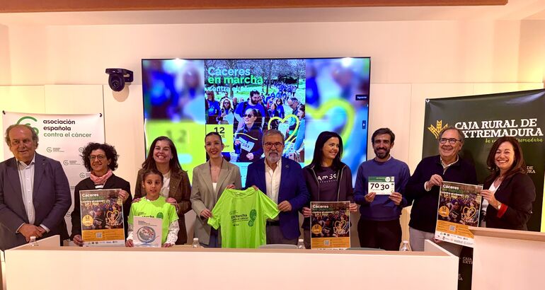 La Asociación Española Contra el Cáncer (AECC) en Cáceres ha presentado este martes la VIII edición de la Marcha por la Investigación, una cita solidaria ya consolidada en la ciudad que se celebrará este domingo, 12 de abril, a las 11:00 horas, con salida desde la Plaza Mayor y llegada al Parque del Rodeo.
