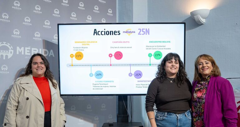 En concreto, la Asociación de Mujeres Malvaluna llevará a cabo con motivo del 25N una serie de actos, con la colaboración del Consistorio emeritense, motivo por el cual en la rueda de prensa también han participado las técnicas de Igualdad de este colectivo feminista, Alicia Ledesma y Alba Redondo