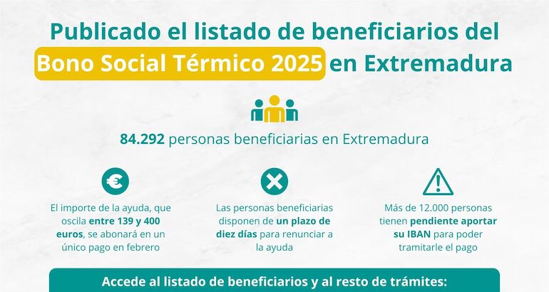La resolución de concesión de la ayuda ha sido publicada en la edición del miércoles, 24 de diciembre, en el Diario Oficial de Extremadura (DOE) y tiene un presupuesto asignado total de 17.399.057,68 euros.