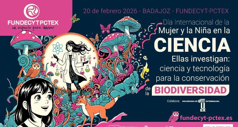 La Consejería de Educación, Ciencia y Formación Profesional organiza, a través de FUNDECYT-PCTEX y con la colaboración de la Universidad de Extremadura (UEx), el encuentro 'Ellas investigan - Biodiversidad y Existencia Humana', una jornada divulgativa que se celebrará el 20 de febrero en Badajoz con el objetivo de visibilizar referentes femeninos en ciencia y tecnología e inspirar vocaciones tempranas en disciplinas STEAM entre jóvenes.