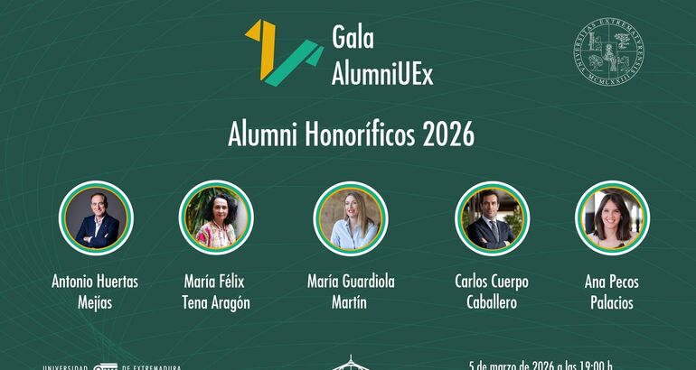 Así pues, la Universidad de Extremadura celebrará el próximo 5 de marzo, a las 19:00 horas, la Gala AlumniUEx 2026 en el Paraninfo del campus universitario de Badajoz, en el Edificio Metálico, un acto institucional concebido para fortalecer los vínculos entre la institución académica y sus antiguos estudiantes, así como para proyectar su identidad académica, social y cultural más allá del campus.