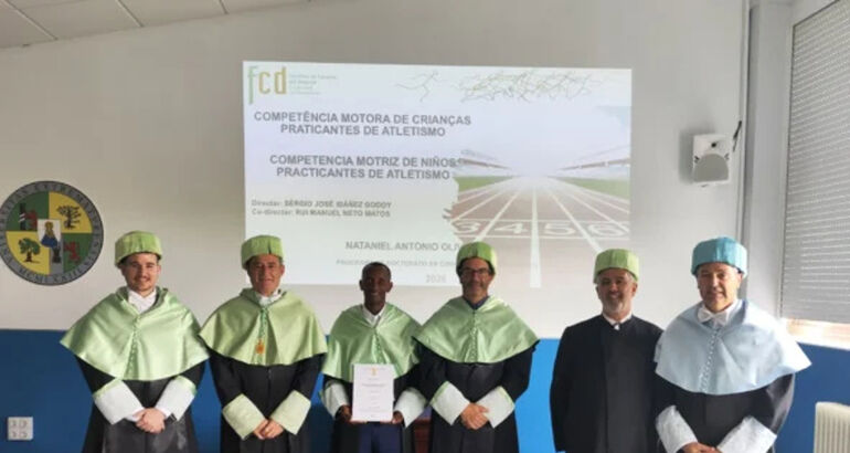 La investigación se centra en el análisis de la competencia motriz en niños hasta los 12 años, abordando su relación con la práctica deportiva y, en particular, con el atletismo. Entre sus principales aportaciones, destaca la evidencia de que la práctica sistemática del atletismo puede constituir una modalidad de referencia para el desarrollo de la competencia motriz en la infancia, así como el desarrollo y validación de un instrumento específico de evaluación adaptado a este contexto. El estudio aporta, además, una visión aplicada de gran relevancia para el ámbito educativo y deportivo, al proporcionar herramientas que permiten optimizar el diseño de programas de entrenamiento y favorecer el desarrollo integral de los niños a través del deporte. La tesis ha sido presentada bajo la modalidad de compendio de publicaciones e incorpora un total de seis estudios publicados en revistas científicas indexadas, lo que evidencia la "solidez" y "proyección internacional" de este trabajo, apunta en nota de prensa la Uex. Esta investigación supone un ejemplo de la "estrecha" colaboración científica entre España y Portugal, tanto por el perfil del doctorando, de nacionalidad portuguesa, como por la dirección de la tesis, compuesta por el catedrático Sergio José Ibáñez Godoy, de la Universidad de Extremadura, y el catedrático Rui Manuel Neto e Matos, del Instituto Politécnico de Leiria. También ha contado con un tribunal evaluador de carácter internacional, integrado por el catedrático de la Universidad de Extremadura Sebastián Feu, el catedrático de la Universidad de Coimbra Rui Mendes, y el catedrático Carlos David Gómez, de la Universidad de Alicante. Un elemento especialmente destacable del acto ha sido su elevada solemnidad, ya que tanto el doctorando como los directores y los miembros del tribunal han participado ataviados con el traje académico, reforzando el carácter institucional y ceremonial de la defensa. PROYECCIÓN INTERNACIONAL Así, el Programa de Doctorado mantiene una sólida red de colaboración internacional materializada en la codirección de tesis doctorales con profesorado de diversas instituciones portuguesas, entre las que destacan la Universidade da Beira Interior, el Instituto Politécnico de Castelo Branco, el Instituto Politécnico de Santarém, el Instituto Politécnico de Setúbal, el Instituto Politécnico de Coímbra, el Instituto Politécnico da Guarda y el Instituto Politécnico de Leiria. Asimismo, esta proyección internacional se extiende a América Latina mediante una codirección activa con la Universidad Nacional de Costa Rica, lo que refuerza el carácter global, la diversidad académica y la transferencia de conocimiento del programa. "Fomentar este tipo de iniciativas es fundamental porque permite integrar perspectivas complementarias, aumentar la calidad metodológica de los estudios y generar evidencia más robusta y transferible. Además, facilita la formación internacional de los doctorandos, incrementa la visibilidad científica de las instituciones y contribuye a la creación de redes estables de conocimiento que impactan directamente en la mejora de la práctica profesional en el ámbito deportivo y educativo", señala Sergio José Ibañez Godoy, codirector de la tesis.